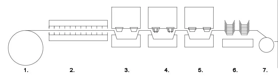 عندما تكون متطلبات الإنتاج المرتفع أهم من دقة القطع بالقالب، نوصي باستخدام ماكينات التشكيل متعددة المحطات.